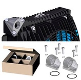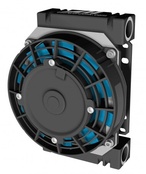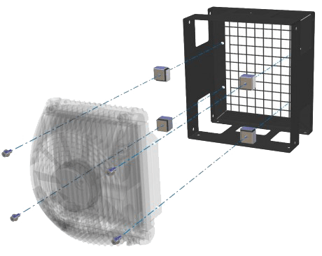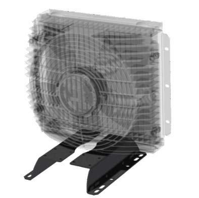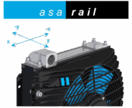 - Do chłodnic typu TT Rail można również zamontować nóżki montażowe i obudowy ochronne. Ponadto w obudowie ochronnej znajdują się pochłaniacze wibracji, które wielokrotnie wydłużają żywotność silnika wentylatora, jeśli na urządzeniu występują dodatkowe wibracje.